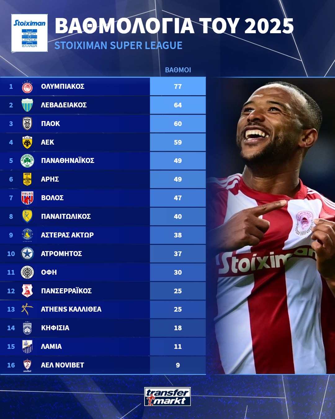 Τα ματς της Superleague για το 2025 ολοκληρώθηκαν και το to10.gr καταγράφει την συγκομιδή των ομάδων, την διαφορά του πρώτου Ολυμπιακού και την έκπληξη της δεύτερης θέσης.