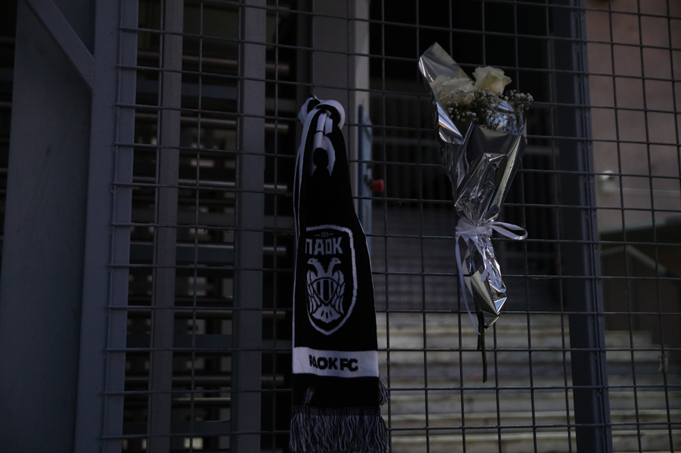 Στο γήπεδο της Τούμπας, βρέθηκαν φίλοι του ΠΑΟΚ για να αφήσουν λουλούδια και κασκόλ, ως ελάχιστο φόρο τιμής στους νεκρούς φίλους του «Δικεφάλου».