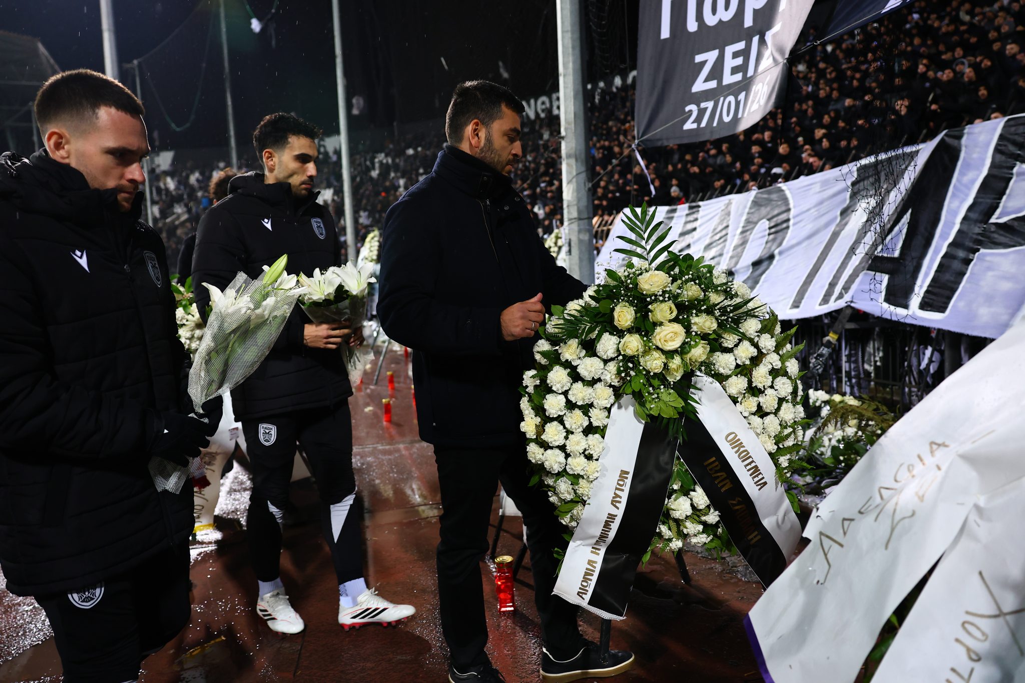 Λίγο πριν τη σέντρα, οι παίκτες και το προπονητικό επιτελείο τόσο του ΠΑΟΚ, όσο και του Πανσερραϊκού κατέθεσαν στεφάνια μπροστά από τη Θύρα 4 στη μνήμη των επτά οπαδών.