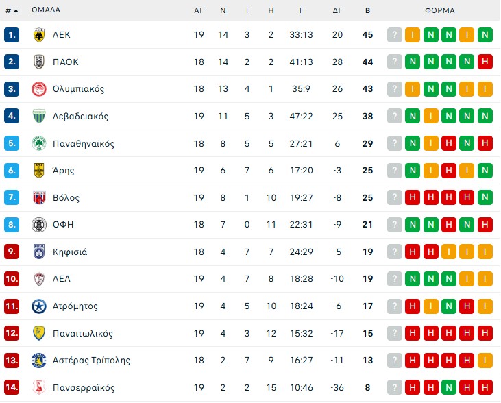 Δείτε πως έχει διαμορφωθεί η βαθμολογία της Superleague μετά τα σημερινά αποτελέσματα.