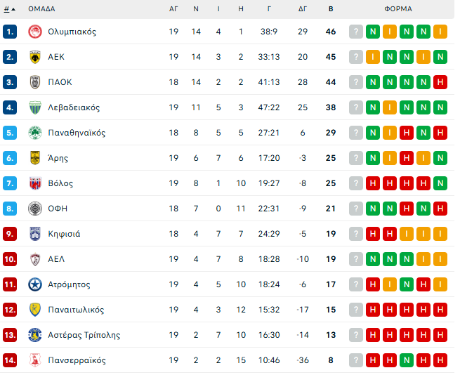 Ο Ολυμπιακός απολαμβάνει πλέον τη μοναξιά της κορυφής, με την ομάδα του Χοσέ Λουίς Μεντιλίμπαρ να είναι στο +1 από την ΑΕΚ και στο +2 από τον ΠΑΟΚ, που έχει όμως ένα παιχνίδι λιγότερο, καθώς εκκρεμεί το ματς με την Κηφισιά.