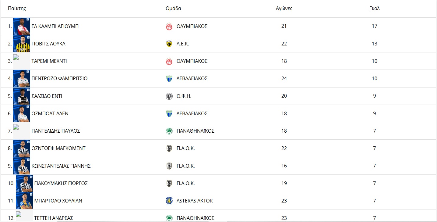 Η μάχη των πρώτων σκόρερ της Super League για τη σεζόν 2025-26, με τον Αγιούμπ Ελ Κααμπί να έχει αποκτήσει σαφές προβάδισμα μετά τα δύο γκολ που πέτυχε κόντρα στον ΟΦΗ. Μόνο ο Λούκα Γιόβιτς τον απειλεί.