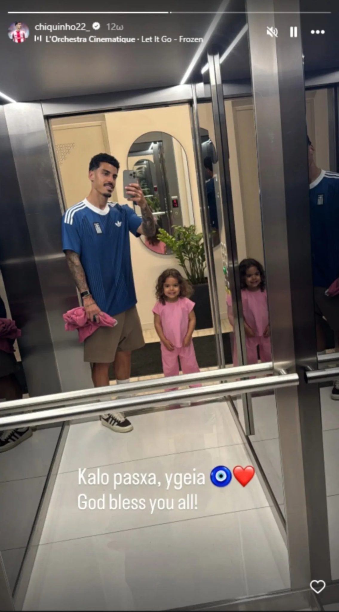 Με αφορμή τις άγιες ημέρες του Πάσχα, ο Πορτογάλος μεσοεπιθετικός έκανε μία ανάρτηση στον λογαριασμό του στο Instagram, δημοσιεύοντας φωτογραφία με τη νέα φανέλα της Εθνικής Ελλάδας και ευχές για «Καλό Πάσχα με υγεία» στα ελληνικά.