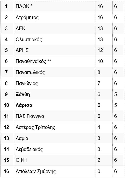 **Ο Παναθηναϊκός έχει και αυτός αφαίρεση 6 βαθμών (-6) από την περσινή σεζόν.