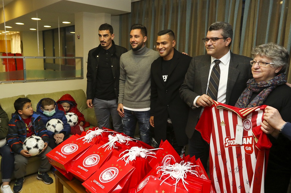 Ο Λάζαρος Χριστοδουλόπουλος, ανήμερα των γενεθλίων του, ο Ματίας Ναουέλ και ο Μιγκέλ Άνχελ Γκερέρο, καθώς και ο Διευθυντής Ε.Κ.Ε. της ΠΑΕ Ολυμπιακός, κ. Δομένικος Μασούλας, πέρασαν ώρα δίπλα στα παιδιά. Έβαλαν χαμόγελα στα γλυκά τους προσωπάκια και μοίρασαν δώρα και ελπίδα. Το πιο σημαντικό. Αυτά τα παιδιά γνωρίζουν καλά ότι δεν είναι μόνα. Ο κ. Βαγγέλης Μαρινάκης τονίζει διαρκώς την ανάγκη ο Θρύλος να επιστρέφει στον κόσμο την αγάπη που λαμβάνει. Με κάθε τρόπο. Με πράξεις, όχι με λόγια. Μία τέτοια πράξη ήταν η σημερινή. Ο Ολυμπιακός, σε ρόλο Άγιου Βασίλη, έφερε τα δώρα, τα ερυθρόλευκα δώρα, στα παιδιά που δοκιμάζονται. Και μαζί, έφερε τη χαρά!