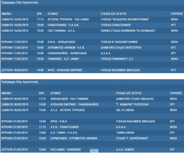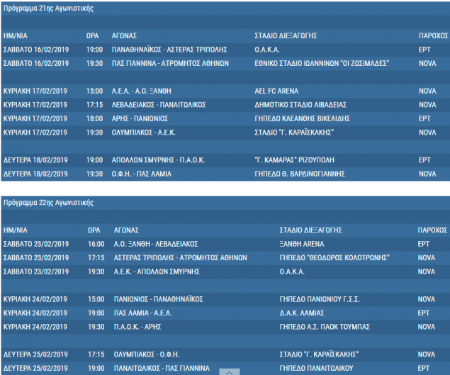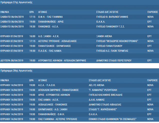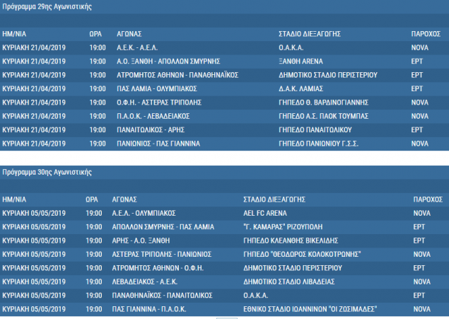 Αναλυτικά το πρόγραμμα μέχρι το τέλος του πρωταθλήματος: