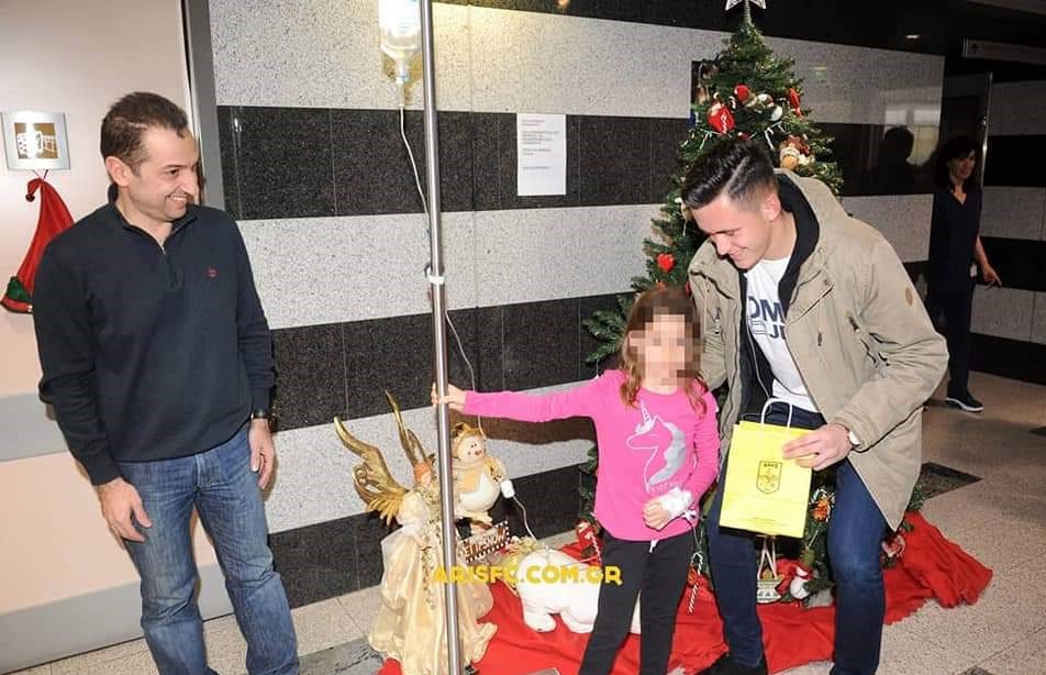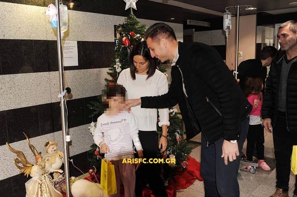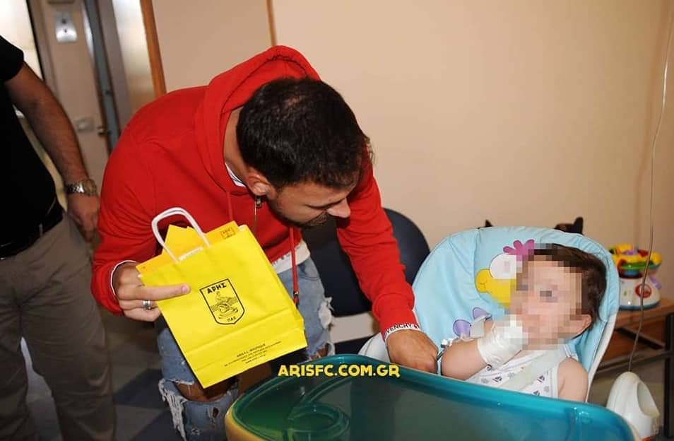 «Μια άλλη αντιπροσωπεία ποδοσφαιριστών του ΑΡΗ (Γιώργος Δεληζήσης, Χαβιέ Ματίγια, Μιχάι Κόρχουτ, Δημήτρης Διαμαντόπουλος και Απόστολος Τσιλιγγίρης) συνοδευόμενοι από τον Γενικό Αρχηγό, Δημήτρη Νιαρχάκο και το μέλος του τεχνικού επιτελείου της ομάδας μας, Απόστολο Τερζή, επισκέφτηκαν –επίσης- σήμερα το μεσημέρι την Παιδιατρική κλινική του Ιατρικού Διαβαλκανικού Θεσσαλονίκης, όπου μοιράστηκαν δώρα, ευχές και χαμόγελα στα παιδιά.