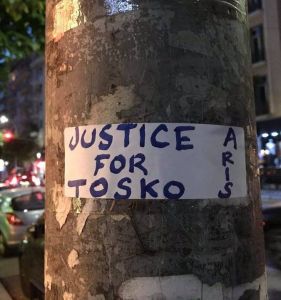 Στη Θεσσαλονίκη η οργή είναι πιο έντονη και σε κεντρικούς δρόμους της πόλης, έχουν επικολληθεί αφίσες που ζητούν δικαιοσύνη και δικαίωση για τον Τόσκο.