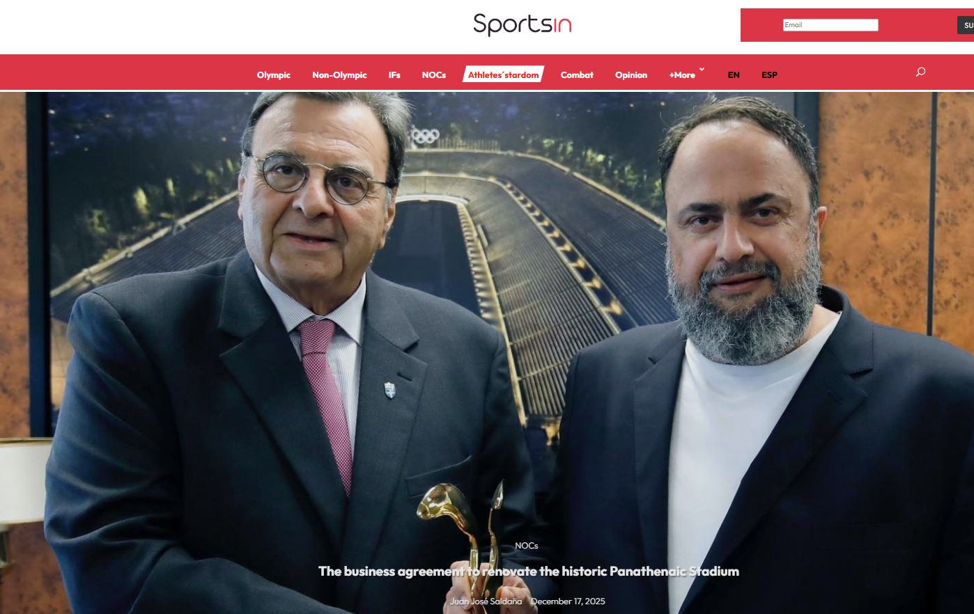 Η προσφορά του Ευάγγελου Μαρινάκη, να αναλάβει το κόστος της ανακαίνισης του Παναθηναϊκού Σταδίου (Καλλιμάρμαρο) με χρυσή χορηγία της Capital Maritime & Trading Corp. αναφέρεται στις σημαντικότερες ειδήσεις στο newsletter της Ευρωπαϊκής Ολυμπιακής Επιτροπής, το οποίο φτάνει στις εθνικές Ολυμπιακές Επιτροπές όλων των χωρών.