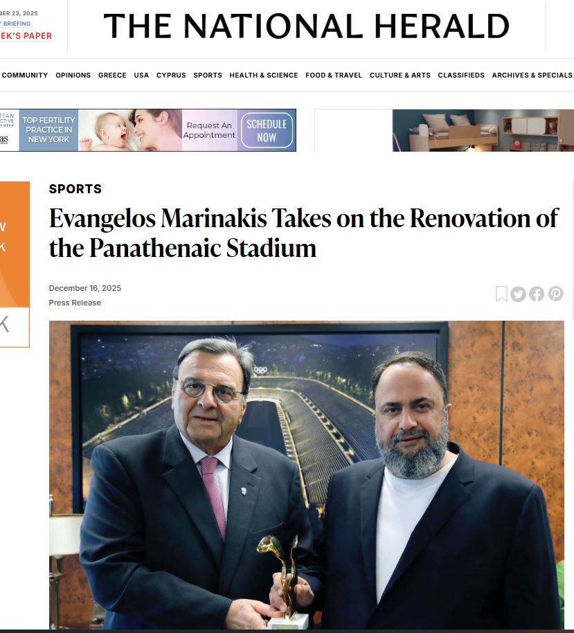 Επίσης, στον ιστότοπο του «Εθνικού Κήρυκα» της Νέας Υόρκης (thenationalherald.com), αναφέρεται ότι το Καλλιμάρμαρο είναι ιστορικό μνημείο, που ανακατασκευάστηκε τον 19ο αιώνα για την αναβίωση των πρώτων σύγχρονων Ολυμπιακών Αγώνων από τον εθνικό ευεργέτη Γεώργιο Αβέρωφ. Και πως τώρα πρόκειται να επιστρέψει στον αρχικό του σκοπό, «χάρη στη γενναιόδωρη υποστήριξη του κ. Ευάγγελου Μαρινάκη — ενός ένθερμου υποστηρικτή του αθλητισμού που συμβάλλει με ουσιαστικό και ανιδιοτελή τρόπο, χωρίς να επιδιώκει κανένα ανταποδοτικό όφελος».