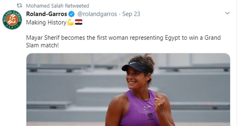 Μια τενίστρια, που λατρεύεται σαν Θεά στην πατρίδα της και μάλιστα πρόσφατα είχε δεχθεί τα συγχαρητήρια από τον Σαλάχ για την συμμετοχή της στο κυρίως ταμπλό του Ρολάν Γκαρός.