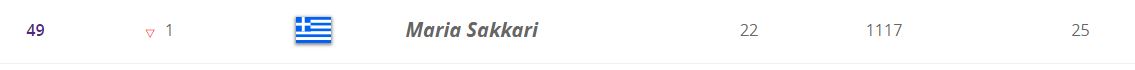 Έπεσε στο Νο. 49 της παγκόσμιας κατάταξης η Μαρία Σάκκαρη, σύμφωνα με την ενημέρωση της WTA.