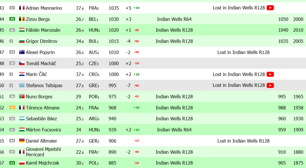 Η ήττα από τον Γάλλο έφερε τον συμπατριώτη μας από το Νο.30 στο Νο.43 του κόσμου, με τον Στέφανο να μένει για πρώτη φορά εκτός top-40 μετά το 2018, ενώ η αντίστοιχη από τον Καναδό αναμένεται να τον ρίξει τουλάχιστον στο Νο.50, ενώ είναι πάρα πολύ πιθανό να πέσει ακόμα περισσότερο στην παγκόσμια κατάταξη.