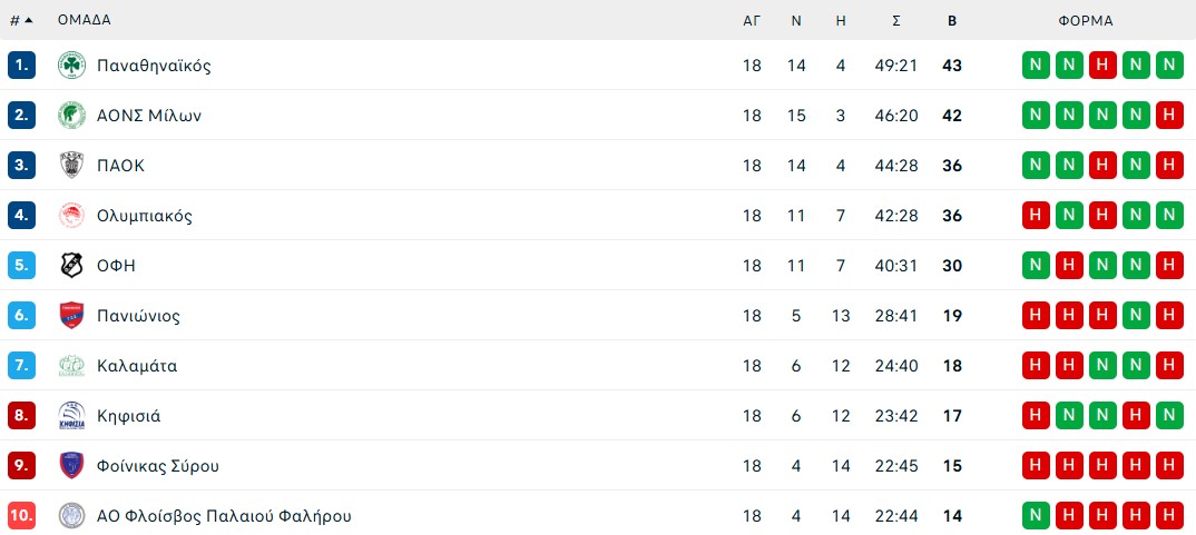 Δείτε πως διαμορφώθηκε η τελική βαθμολογία στην κανονική περίοδο της Volleyleague ανδρών, αλλά και ζευγάρια των ημιτελικών.