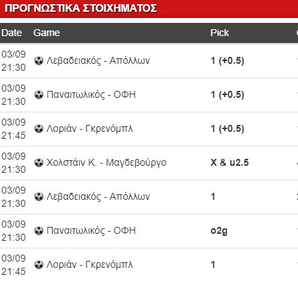 Τρία ματς κι ένα… μπόνους με απασχολούν. Τα δύο ελληνικά (αναγκαστικά, αφού υποσχέθηκα ότι θα ποντάρω σε κάθε ένα από τα 240 της λίγκας μας), οι γαλλιδούλες και οι γερμανικοί «πελαργοί»:..