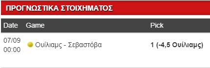 Η Σερίνα αποδίδει καλά, σερβίρει εξαιρετικά, με 40 άσους στα πρόσφατα τρία ματς απλοποιεί το παιχνίδι της κι αν συνεχίσει έτσι θα πάρει την πρόκριση. Ταυτόχρονα η Σεβαστόβα δεν έχει σταθερότητα στο σερβίς και αυτό μπορεί να της κοστίσει. Νίκη της Ουίλιαμς με ένα σκορ κοντά στο 6/4, 6/3 είναι ένα λογικό σενάριο.