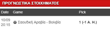 Με τα παραπάνω δεδομένα υπάρχει αξία στο 1.96 του άσου, αλλά και στη νίκη των Σαουδάραβων στο -1 ασιατικό χάντικαπ. Εξάλλου, η θερμοκρασία στο Ριάντ θα αγγίξει περίπου τους 40 βαθμούς κελσίου και οι Βολιβιανοί εκτός από το ότι αποδυναμώνονται αισθητά εκτός έδρας, θα έχουν να αντιμετωπίσουν και τον καύσωνα.