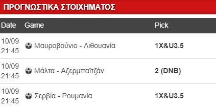 Τρία παιχνίδια και τα 3 στις 21.45. Πρώτο ματς αυτό στην Ποντγκόριτσα ανάμεσα σε Μαυροβούνιο και Λιθουανία. Οι γηπεδούχοι προέρχονται από «ηρωϊκό» βαθμό μέσα στην Ρουμανία, σε ένα παιχνίδι που αγωνίστηκαν με 10 παίχτες από το 77’, δεχόμενοι αρκετές ευκαιρίες, ειδικά στο β’ μέρος. Βέβαια οι Μαυροβούνιοι τα τελευταία χρόνια παρουσιάζουν βελτίωση και ειδικά εντός έδρας με ομάδες επιπέδου Λιθουανίας ξέρουν να παίρνουν τα αποτελέσματα που θέλουν. Από την άλλη η Λιθουανία φανέρωσε τις αδυναμίες της κόντρα στην Σερβία, γνωρίζοντας την ήττα με 0-1, με το τελικό σκορ μάλλον να τους κολακεύει. Η απουσία του Γιόβετιτς για τους γηπεδούχους τους αποδυναμώνει κάπως επιθετικά και για αυτό θα πάω με το 1Χ&U3.5 στο 1.44.