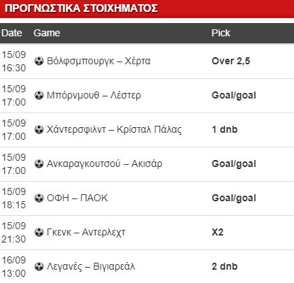 Επίφοβα είναι τα φαβορί και στη Γερμανία, η Μπάγερν πληρώνει ψίχουλα με τη Λεβερκούζεν και δεν είμαι βέβαιος ότι θα την υποτάξει, παρά τα όσα έχουν δείξει έως τώρα οι Βαυαροί. Η Λειψία είναι επίσης χαμηλά υποδεχόμενη το Αννόβερο και στο Μάιντζ – Αουγκσμπουργκ θα υπάρξουν περισσότερες διακοπές ελέω φάουλ αντί για κανονική ροή αγώνα. Και η τρελο-Χόφενχαϊμ δεν είναι για τόσο χαμηλά στο Ντίσελντορφ κόντρα σε μια παθιασμένη στο ξεκίνημα Φορτούνα. Η Βόλφσμπουργκ έχει εντυπωσιάσει και υποδέχεται μια Χέρτα που έχει πολύ ρέντα έως τώρα, θα το απέφευγα αν δεν έβλεπα το over 2,5 στο ωραιότατο 2.15 (έπεσε ήδη από το 2.30) όπως αξίζει και το αμφίτερμα στο Γκλάντμπαχ – Σάλκε, δύο ομάδες που παίζουν με την μπάλα κάτω, αλλά είναι στο 1.67.