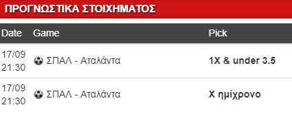 Το ενδιαφέρον μας θα στραφεί στην αναμέτρηση της Σέριε Α, εκεί όπου η Σπαλ υποδέχεται την Αταλάντα. Η γηπεδούχος μπορεί να έχασε με 1-0 από την Τορίνο στο τελευταίο παιχνίδι της, θα μπορούσε όμως κάλλιστα να πάρει θετικό αποτέλεσμα, αν ήταν πιο αποτελεσματική επιθετικά. Προηγουμένως μέτρησε 3 νίκες στη σειρά, όλες με σκορ 1-0 κόντρα Σπέτσια (Κύπελλο, εκτός), Μπολόνια (1-0 εκτός) και Πάρμα (1-0 εντός), δείχνοντας πόσο κυνική είναι μπροστά, αλλά και πόσο… σκληρή είναι στην άμυνα. Τόσο σκληρή που μοιράζει και… Σπαλ-ιάρες αν χρειαστεί και ας μην έχει σχέση με τον Σπαλιάρα!