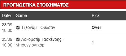 Λογικά θα δούμε πολλά γκολ στην Ν.Κορέα ανάμεσα σε Τζεονάμ και Ουλσάν. Η γηπεδούχος είναι αναγκασμένη να παίξει επιθετικά και συνηθίζει να κάνει ροντέο όλα τα παιχνίδια της. Η φιλοξενούμενη είναι από τις πιο φορμαρισμένες ομάδες του πρωταθλήματος και βρίσκει με ευκολία δίχτυα σε κάθε ματς. Θα αποφύγω το διπλό, αφού δεν εμπνέει εμπιστοσύνη ανασταλτικά.