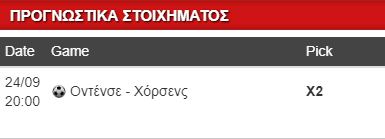 Σήμερα, προκύπτει σημείο από τη Superliga της Δανίας. Η Οντένσε αντιμετωπίζει τη Χόρσενς. Οι γηπεδούχοι παρά τις υψηλές προσδοκίες με την έναρξη της αγωνιστικής περιόδου, απογοητεύουν και βρίσκονται στην τελευταία θέση (μαζί με τη Χόμπρο) της κατάταξης. Δημιουργούν ευκαιρίες στα παιχνίδια τους, όμως δεν είναι αποτελεσματικοί. Ηττήθηκαν από τη νεοφώτιστη Έσμπιεργκ την προηγούμενη αγωνιστική, με σκορ 2-0, αν και το πρώτο δεν έπρεπε να μετρήσει. Μόλις μία νίκη με το πέρας εννέα αγωνιστικών.