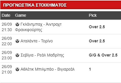 Αρχής γενομένης από την αναμέτρηση ανάμεσα στη Γκλάντμπαχ και την Άιντραχτ Φρανκφούρτης. Σε καλύτερη μοίρα οι γηπεδούχοι, παρότι ηττήθηκαν από τη Χέρτα το περασμένο Σάββατο εκτός έδρας με σκορ 4-2, είναι στην έκτη θέση της κατάταξης. Τρία σερί ματς με τέρματα εκατέρωθεν για το σύνολο του Χέκινγκ. Η Άιντραχτ από την άλλη, έμεινε στο 1-1 με αντίπαλο τη Λάιπσιγκ εντός έδρας, γλίτωσε σε ορισμένες φάσεις τη δεύτερη παραβίαση της εστίας της. Επιθετικές ομάδες αμφότερες, επιλογή το over 2.5 γκολ.