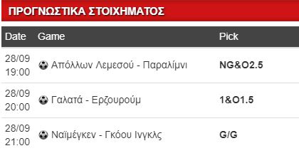 Τέλος πάω Τουρκία και στο παιχνίδι της Γαλατά με την Ερζουρούμ. Οι νεοφώτιστοι δυσκολεύονται πολύ και μετά από 6 αγωνιστικές μετρούν μόλις 2 βαθμούς και αυτούς εκτός έδρας. Στο πιο πρόσφατό τους ηττήθηκαν με 0-1, εντός έδρας παρόλο που αγωνίστηκαν από το 8’ με παίχτη παραπάνω. Αυτό έφερε την απόλυση του κόουτς Αλτιπαρμάκ και την πρόσληψη του Εζντιλέκ, που σήμερα όμως δεν θα είναι στον πάγκο. Από ισχυρή «σφαλιάρα» και η Γαλατά, 2η φετινή, μετά το 3-0 κόντρα στην Ακίσασπορ, σε ένα παιχνίδι όμως που δεν ήταν τόσο κακή, έχοντας χαμένο πέναλτι στο 43’ με το σκορ στο 0-0. Θεωρώ πως η «Τζιμ Μπομ» θα βγάλει αντίδραση όπως συνηθίζει άλλωστε μετά από τέτοιες ήττες και ειδικά εντός έδρας σκοράρει από 2 γκολ και πάνω στα 20 από τα 22 πιο πρόσφατά της. Άσος και Over 1.5 σε απόδοση 1.42.