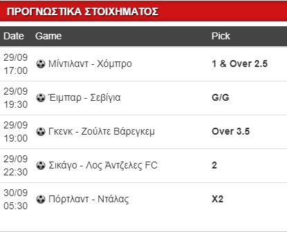 Στην άλλη πλευρά του Ατλαντικού, σε… νορμάλ ώρα για τα ελληνικά δεδομένα (22:30), το Σικάγο υποδέχεται το Λος Άντζελες FC. Αντίθετες πορείες πραγματοποιούν οι δύο ομάδες, οι γηπεδούχοι συμβιβάζονται με την αποτυχία να μπουν στα πλέι οφ και θα παίξουν για το γόητρό τους. Το Λος Άντζελες έκανε ορισμένες μέτριες εμφανίσεις, έχασε βαθμούς ωστόσο δείχνει να επανέρχεται, έτοιμο να διεκδικήσει ακόμα και την πρωτιά στη Δυτική Περιφέρεια. Με τον επιθετικό Ντιομάντε (9 γκολ) στην ενδεκάδα, δυναμώνει στη «γραμμή κρούσης». Επιλογή το διπλό σε αποδόσεις διπλασιασμού.