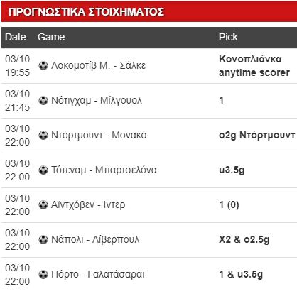 Τέλος, παραείναι δελεαστικός ο άσος (για 1.92) της Νότιγχαμ με την Μίλγουολ που παραπαίει! Αρκεί να μην βγει πάλι καμία κόκκινη και συμβούν τα απίθανα (όπως στο Αστον Βίλα – Πρέστον)…