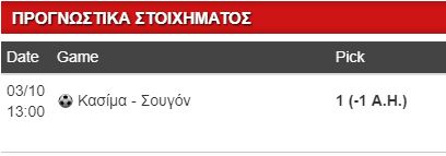 Στις 13:00 η Κασίμα θα υποδεχθεί τη Σουγόν στον έτερο ημιτελικό του Τσάμπιονς Λιγκ Ασίας. Η γηπεδούχος βρίσκεται σε εξαιρετική κατάσταση και μετράει τρεις διαδοχικές νίκες στο πρωτάθλημα, που την ανέβασαν στην πρώτη τριάδα. Είναι το φαβορί βάσει αποδόσεων για να κατακτήσει το τρόπαιο και μόνο τυχαία δεν έφτασε ως εδώ. Η φιλοξενούμενη απέκλεισε με… μαγικό τρόπο την Τζέονμπουκ στην προηγούμενη φάση. Δεν πατάει καλά εδώ και πάνω από ένα μήνα και έκανε περίπου 600 λεπτά για να βρει δίχτυα. Αμυντικά μπάζει και αν παρουσιαστούν σοβαροί οι Ιάπωνες δεν θα αντιμετωπίσουν πρόβλημα για να σφραγίσουν από σήμερα την πρόκριση στον τελικό.