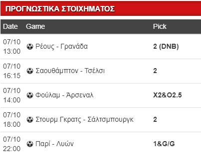 Ξεκινάω με Πρέμιερ Λιγκ και το παιχνίδι της Φούλαμ με την Άρσεναλ. Σε εξαιρετική κατάσταση οι φιλοξενούμενοι μετρούν 5 σερί νίκες στο πρωτάθλημα, ενώ την Πέμπτη αγωνίστηκαν με αλλαγές και επικράτησαν εύκολα της Καραμπάγκ εκτός για το Γιουρόπα. Από την άλλη η Φούλαμ παραμένει στους 5 βαθμούς μετά την ήττα από την Έβερτον με 3-0, σε ένα παιχνίδι που έδειξε καλά στοιχεία στο πρώτο ημίχρονο, για να καταρρεύσει στην επανάληψη και έτσι έφτασε τα 4 σερί ματς δίχως νίκη. Τα παιχνίδια και των δύο συχνά κρύβουν γκολ και το Χ2&O2.5 στο 1.75 μου αρκεί. Λίγο αργότερα η Τσέλσι δοκιμάζεται στην έδρα της Σαουθάμπτον, η οποία μετράει 2 σερί ήττες στο πρωτάθλημα, δίχως καν να σκοράρει, ενώ μεσοβδόμαδα προκρίθηκε στα πέναλτι για το Λιγκ Καπ με αντίπαλο την Έβερτον. Οι «μπλε» του Λονδίνου προέρχονται από ισοπαλία με τη Λίβερπουλ και από νίκη την Πέμπτη κόντρα στην Βίντι αγωνιζόμενοι με πολλές αλλαγές. Σήμερα μοναδικός στόχος είναι το διπλό (1.65) και θεωρώ πως εύκολα ή δύσκολα θα το πάρει.