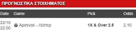 Από την άλλη μεριά, έχουμε μια Λέστερ η οποία έρχεται από την εντός έδρας ήττα της με 2-1 από την Εβερτον και ενώ νωρίτερα είχαν προηγηθεί τρία καλά αποτελέσματα σε πρωτάθλημα και Λιγκ Καπ. Είναι ή του ύψους ή του βάθους, μετρώντας τέσσερις νίκες και άλλες τόσες ήττες σε 8 ματς στην Πρέμιερ Λιγκ, έχοντας δεχθεί 12 τέρματα ως τώρα. Κοινώς είναι αλλοπρόσαλλη συνολικά και αμυντικά, επικίνδυνη επιθετικά και δεν θα πρέπει να υποτιμηθεί. Αν η Αρσεναλ προσέξει και παίξει το ποδόσφαιρο που μπορεί, η λογική λέει ότι θα επικρατήσει, ενώ με βάση ότι η άμυνά της δεν φημίζεται για τη σταθερότητά της στα περισσότερα φετινά ματς, δεν είναι απίθανο να δεχθεί και κάποιο τέρμα. Εχει λογική η επιλογή του συνδυαστικού 1 και over 2.5, σε απόδοση 2.10.