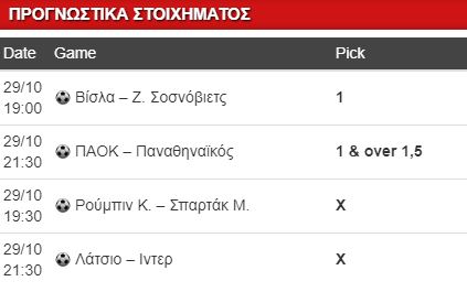 Μου βγήκε μεγάλο κείμενο, δευτεριάτικα, για να καταλήξεις σε… τι; Στο 1.70 του dnb της Ρούμπιν, στο combo του ΠΑΟΚ (με over 1,5) επίπεδου… 1,83 και στο ρισκαδόρικο χηνάρι του Λάτσιο – Ιντερ, που κι αυτό εμπεριέχει το ρίσκο του (συν ότι η Λάτσιο με τις «μεγάλες» δύσκολα σηκώνει κεφάλι φέτος…).