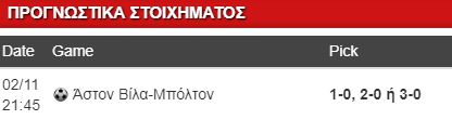 Πάμε Αγγλία για την αναμέτρηση Άστον Βίλα-Μπόλτον. Με νίκη ξεκίνησε η θητεία του Ντιν Σμιθ στον πάγκο της αγαπημένης του Βίλα, ακολούθησαν όμως δύο διαδοχικές ήττες, η ομάδα κινδυνεύει να μείνει πίσω στη βαθμολογία κι η επιστροφή στις νίκες είναι επιτακτική. Ο άσος είναι μικρός, και δεν είναι τόσο εύκολος όσο δείχνει, η Μπόλτον μετρά μόλις ένα γκολ στα 5 τελευταία παιχνίδια της κι εκεί θα σταθούμε. Με τα παιχνίδια της Βίλα να είναι επίσης κλειστά, να κερδίσει η ομάδα του Σμιθ χωρίς να δεχτεί γκολ συγκεντρώνει πολλές πιθανότητες κι η απόδοση είναι στο 2.30.