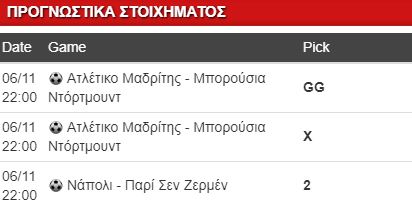 Πηγαίνω κατευθείαν στο Ατλέτικο Μαδρίτης – Ντόρτμουντ στο πρόγραμμα της ημέρας κι αυτό γιατί μου… χρωστάνε ένα GG από την πρώτη τους φετινή αναμέτρηση. Οι Γερμανοί έκαναν πλάκα στους Μαδριλένους μπροστά στο κοινό τους και τους κέρδισαν με σκορ 4-0, κάτι που αν βγάλουν την στόφα του στο γρασίδι οι γηπεδούχοι δεν πρόκειται να γίνει και σήμερα. Δύσκολο ματς για την “Ατλέτι”, που πρέπει να βρει οπωσδήποτε γκολ αφού οι παίκτες του Λουσιάν Φαβρ δεν έχουν σκοπό να πάνε στην ισπανική πρωτεύουσα για να μείνουν… ήσυχοι. Άλλωστε έχουν φτάσει και τα 15 ματς αήττητοι σε όλες τις διοργανώσεις. Δεν πρόκειται για καμιά τεράστια ευκαιρία το αμφίσκορο, αλλά είναι αρκετά λογικό. Εικάζω πως το ματς δεν αποκλείεται να μείνει και στο Χ, αλλά θα με έκανε να… πέσω από την βεράντα αν μείνει στο 0-0. Το 1-1 κάτι μου κάνει. Με απουσίες οι γηπεδούχοι, θα ποντάρουν περισσότερο στην έδρα τους και την σκληρή στάση που μπορούν να κρατήσουν κόντρα σε οποιαδήποτε ομάδα όταν παίζει φορώντας το… ευρωπαϊκό της κοστούμι.