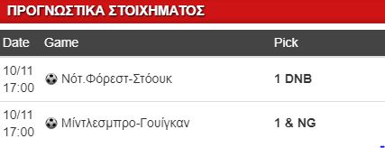 Πάμε στην Τσάμπιονσιπ της Αγγλίας για την αναμέτρηση Νότιγχαμ Φόρεστ-Στόουκ. Mεγάλο ματς, προβάδισμα για τους γηπεδούχους που δείχνουν πιο σοβαροί, μετρούν μόνο μία ήττα στην έδρα τους και ξέρουν να παίρνουν αποτελέσματα. Η Στόουκ δείχνει να συνέρχεται, είναι αήττητη στα 5 τελευταία εκτός έδρας παιχνίδια, το «Riverside» όμως δεν της πηγαίνει, έχει χάσει τα 5 από τα 6 τελευταία παιχνίδια της εκεί, έχει ήδη ηττηθεί φέτος μια φορά από τη Φόρεστ, με 3-2 στο Λιγκ Καπ. Το ματς πάντως είναι αρκετά δύσκολο και για τις δύο ομάδες, γι αυτό θα πάρουμε την ασφάλεια του 1 DNB στο αξιοπρεπέστατο 1.75, εκτιμώντας ότι η ομάδα του Καράνκα μπορεί στη χειρότερη περίπτωση να αποφύγει την ήττα.