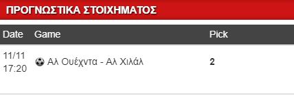 Επίσης θεωρώ πως η γηπεδούχος δεν θα χτυπήσει το σημερινό ματς. Είναι άνετη και το καλοκαίρι απέκτησε πολλούς και καλούς βασικούς της παίκτες από τη Χιλάλ, με πρώτο και καλύτερο τον εμβληματικό στόπερ Οσάμα Χαουσάουι και τον αριστερό μπακ Αλ Ζόρι. Θα ποντάρω στο απλό διπλό επειδή δεν έχει βγει ακόμα το -1 ασιατικό χάντικαπ, αλλά και στις καλές σχέσεις των δύο ομάδων.