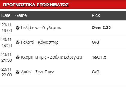 Συνεχίζω με μία δυάδα από Βέλγιο και Γαλλία. Η Μπριζ φιλοξενεί την Ζούλτε Βάρεγκεμ και η Λυών υποδέχεται τη Σεντ Ετιέν. Δεν χρειάζεται να πω πολλά για το πρώτο ματς. Η Μπριζ χρειαζόταν την διακοπή, αφού μετά το διπλό μέσα στη Μονακό ακολούθησε η εκτός έδρας ήττα από τη Σαρλερουά, με αποτέλεσμα η Γκενκ να αυξήσει τη διαφορά της στους 4 βαθμούς, ενώ εντός έδρας φέτος έχει ηττηθεί μόνο από την Ντόρτμουντ. Η Βάρεγκεμ προέρχεται από νίκη, παραμένει όμως χαμηλά στην βαθμολογία έχοντας τη χειρότερη άμυνα με διαφορά του πρωταθλήματος, ενώ εκτός έδρας φέτος έχει μόλις 1 βαθμό σε 7 εξόδους της, όπου κατά μέσο όρο δέχεται 3 γκολ. Πάω λοιπόν με το1&Ο1.5 στο τίμιο 1.50. Όσο για το γαλλικό δεν θέλω να ασχοληθώ με σημεία καθόλου και οι λόγοι είναι πολλοί. Σε καμία περίπτωση δεν μου αρέσει ο άσος στο 1.60 με τις 2 ομάδες να τις χωρίζει μόλις ένας βαθμός και ειδικά όταν για την Λυών ακολουθεί ο πολύ σημαντικός εντός έδρας αγώνας με τη Σίτι για το ΤΣΛ. Η Σεντ Ετιέν βρίσκεται σε πολύ καλή κατάσταση, με μόλις μία ήττα στις τελευταίες 8 αγωνιστικές, έχοντας μάλιστα σκοράρει σε όλες. Αμφότερες αμυντικά έχουν κενά και το G/G στο 1.60 μου αρέσει περισσότερο.