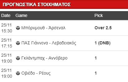Στην Πρέμιερ Λιγκ η Άρσεναλ παίζει εκτός με την Μπόρνμουθ. Από δύο «κολλητές» ήττες οι γηπεδούχοι, από 3 συνεχόμενες ισοπαλίες οι φιλοξενούμενοι. Τέσσερις βαθμοί χωρίζουν τις 2 ομάδες με την Άρσεναλ να θέλει διακαώς την νίκη ώστε να μην χάσει την επαφή της με την 4άδα. Καλή εντός έδρας η Μπόρνμουθ, σκοράρει συχνά, έχοντας μόλις μία ήττα σε 6 αναμετρήσεις. Μόλις μία ήττα εκτός και η Άρσεναλ που δίκαια είναι το φαβορί σήμερα για τη νίκη. Θεωρώ ωστόσο ιδανικότερη επιλογή εδώ το απλό Over (1.50), αφού αμφότερες αμυντικά έχουν κενά.