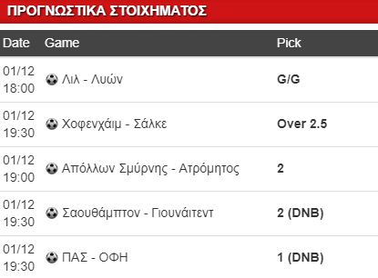 Καλημέρα σε όλη την παρέα και φυσικά πολλές ευχές για έναν υπέροχο Δεκέμβριο. Εξαιρετικά πήγε η Πέμπτη ισοφαρίζοντας τη χασούρα από Τρίτη και Τετάρτη και όχι μόνο αφού βγήκε και ένα μικρό κέρδος. Χτες δεν με ενθουσίασε κάτι και σήμερα επιστρέφω με ορισμένες δυνατές επιλογές σε ένα κουπόνι με αρκετά παιχνίδια.