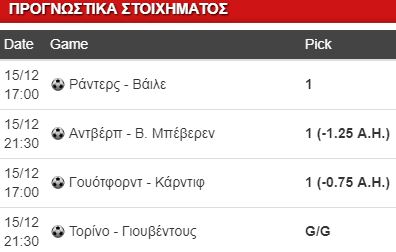 Επόμενη επιλογή από την Πρέμιερ Λιγκ και το παιχνίδι της Γουότφορντ με αντίπαλο την Κάρντιφ. Οι γηπεδούχοι δε διανύουν περίοδο φόρμας, έχουν χάσει σημαντικό έδαφος στην κατάταξη και θέλουν οπωσδήποτε να επανέλθουν στις επιτυχίες. Μετρούν μόλις μία νίκη στα τελευταία πέντε παιχνίδια εντός έδρας, όμως υπάρχει ελαφρυντικό ότι αντιμετώπισαν ομάδες όπως η Γιουνάιτεντ, η Λίβερπουλ, η Σίτι. Η Κάρντιφ έχει μόνο μία ισοπαλία σε επτά παιχνίδια ως φιλοξενούμενη. Άσος με χάντικαπ -0.75.