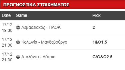 Καλημέρα και καλή εβδομάδα σε όλους. Στα μέσα Δεκέμβρη βρισκόμαστε και με πολλά πρωταθλήματα να ετοιμάζονται για τη χειμερινή διακοπή. Λίγες οι επιλογές σήμερα λόγω ημέρας και πάλι όμως θεωρώ πως υπάρχουν ευκαιρίες για να ασχοληθεί κάποιος σοβαρά.