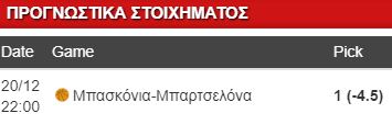 Από όλα τα παραπάνω προκύπτει ότι οι Βάσκοι έχουν το προβάδισμα για τη νίκη, ενώ είναι ικανοί να καλύψουν και το χάντικαπ των 4.5 πόντων, το οποίο βρίσκουμε σε απόδοση του 1.86.