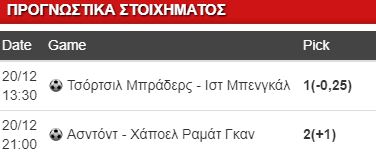 Κύπελλο Ισραήλ. Μονό ματς, για τη φάση των «32». Πολυτέλεια και για τις δύο ομάδες, δεδομένου ότι κοινός στόχος είναι η αποφυγή του υποβιβασμού, κι ας παίζουν σε διαφορετική κατηγορία. Οι αποδόσεις αυτό λαμβάνουν υπ’ όψιν τους και δίνουν τόσο μεγάλη διαφορά, παραβλέπουν ότι η Χάποελ έχει μια εξαιρετική παράδοση στην Ασντόντ (4-2-1 σε επτά αγώνες), που μπορεί να μην δείχνει την τωρινή τους διαφορά δυναμικότητας, ωστόσο χτυπάει καμπανάκι ότι το ματς δεν είναι τόσο εύκολο όσο δείχνει.