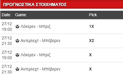 Το απόγευμα η Μπριζ πάει στο Λόκερεν. Αθλιοι οι γηπεδούχοι του Σόλιντ, τελευταίοι, παίζουν όλα τα ματς με το μαχαίρι στα δόντια, αλλά αποδεικνύονται «φαφούτηδες». Στα τελευταία έξι εντός έχουν 9-9 γκολ, όμως οι πρωταθλητές είναι χειρότεροι! Χωρίς νίκη εκτός το τελευταίο τρίμηνο με 6-10 τέρματα σε έξι απόπειρες! Και το διπλό πληρώνει 1.38! Πάμε μωρέ Λόκερεν…