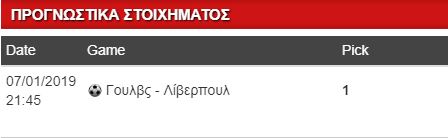 Από την στιγμή που δεν είχαμε απώλεια χθες, σήμερα θα ρισκάρω εκ νέου σε μια υψηλή απόδοση με την ελπίδα πως θα καλοπληρωθούμε. Δεν πρόκειται για άλλο παιχνίδι από το Γουλβς – Λίβερπουλ για το Κύπελλο Αγγλίας, ένα παιχνίδι το οποίο έχει μονόπλευρο ενδιαφέρον. Σε μια σεζόν όπως την φετινή, η αρχαιότερη ποδοσφαιρική διοργάνωση μόνο βραχνάς μπορεί να αποτελέσει για τους «κόκκινους», οι οποίοι θέλουν όσο τίποτε άλλο την κατάκτηση της Πρέμιερ Λιγκ και όσο το δυνατόν καλύτερη πορεία στο Champions League -όπου παραλίγο να αποκλειστούν από τους ομίλους.
