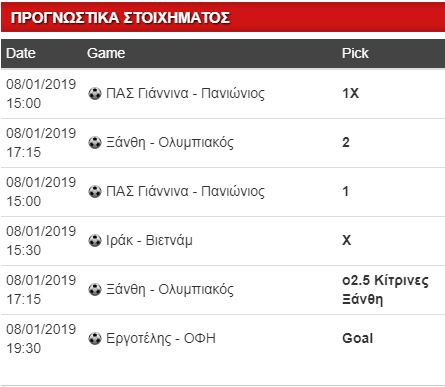 Το απόγευμα στα Πηγάδια οι γηπεδούχοι θα παραταχθούν χωρίς Γέντρισεκ και Σαρπόνγκ. Και οι «ερυθρόλευκοι» (έστω χωρίς Ποντένσε, Σισέ, Ομάρ) έχουν ένα σωρό λόγους, πέραν των αγωνιστικών, για να επικρατήσουν. Θα έπαιζα κόκκινη κάρτα (5.50), αλλά με φρενάρει ο Πραξιτέλης Ζαχαριάδης! Πήρα μόνο κίτρινες…