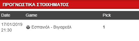 Περιορισμένες οι επιλογές στο κουπόνι της Πέμπτης, ως εκ τούτου θα ασχοληθώ με τη δεύτερη τη τάξει διοργάνωση της Ισπανίας, το Κύπελλο. Η Εσπανιόλ φιλοξενεί τη Βιγιαρεάλ στον επαναληπτικό της φάσης των «16» και ελπίζει να καταφέρει ό,τι απώλεσε στο ματς του «Θεράμικα». Να πάρει την πρόκριση.
