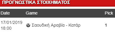 Συνεχίζουμε όμως σήμερα στο Κύπελλο Ασίας, όπου διεξάγεται η τελευταία αγωνιστική της φάση των ομίλων. Δεν είχα σκοπό να ανεβάσω στήλη, αλλά δεν μπορώ να παραβλέψω το γεγονός ότι η Σαουδική Αραβία προσφέρεται αουτσάιντερ, κόντρα στο Κατάρ. Οι Σαουδάραβες ποιοτικά υπερέχουν και πιστεύουν ακόμα και στην κατάκτηση του τροπαίου. Ο Πίτσι δείχνει να βρήκε χημεία και μοναδική απουσία για σήμερα θα είναι ο αρχηγός Σαλέμ Αλ Νταουσάρι. Στη θέση του αναμένεται να αγωνιστεί ο Γιάγια Αλ Σέχρι και θα καλύψει επάξια το κενό του. Οι Καταριανοί βγάζουν ενέργεια και παίζουν με άγνοια κινδύνου, όμως θεωρώ ότι θα πληρώσουν κάποια στιγμή την απειρία τους. Οι τυπικά γηπεδούχοι θέλουν μόνο νίκη για να πάρουν την πρωτιά του ομίλου και συνεπώς να έχουν πιο εύκολο έργο στον δρόμο για τον τελικό και θα τους στηρίξω.